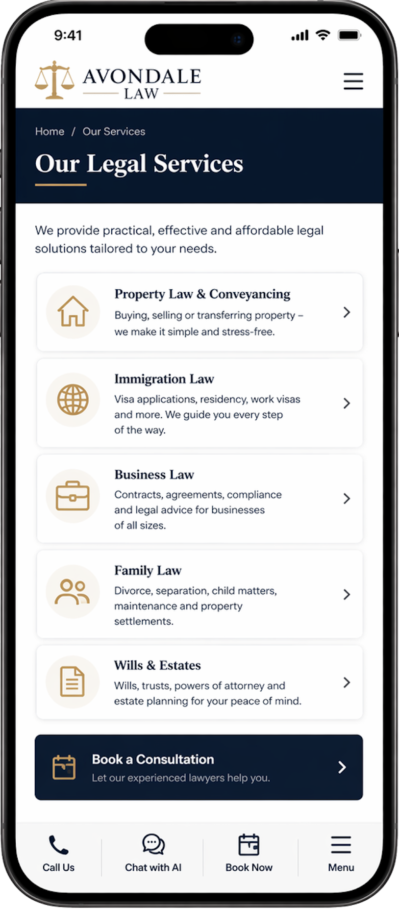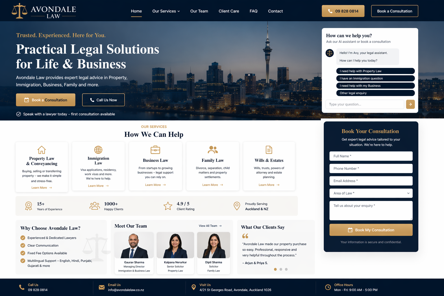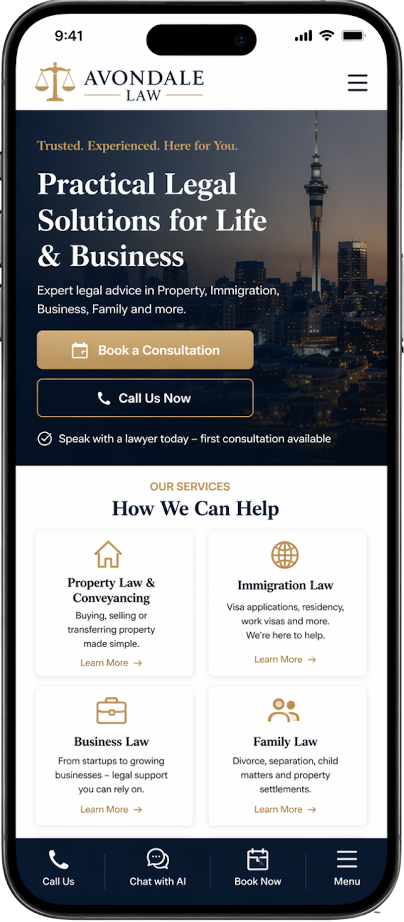 Designed and delivered a modern, structured website with improved UX and content layout for an Auckland legal services client.